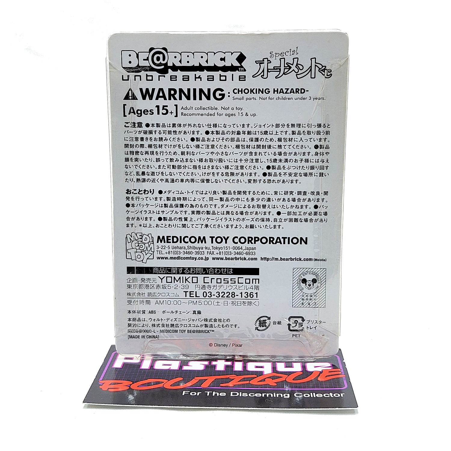 Released in November 2011 as part of a Bearbrick/Disney collaboration, these 100% figures were part of the “Special Ornament Happy Kuji” campaign. In Japan, Kuji (くじ) are Lottery Style contests wherein you have to purchase a “lottery ticket” to determine which figure you will receive from the set. The figure comes complete, and factory sealed on the card. The cards may show some signs of wear due to age/storage, but will still display fine if you choose to keep them sealed.
