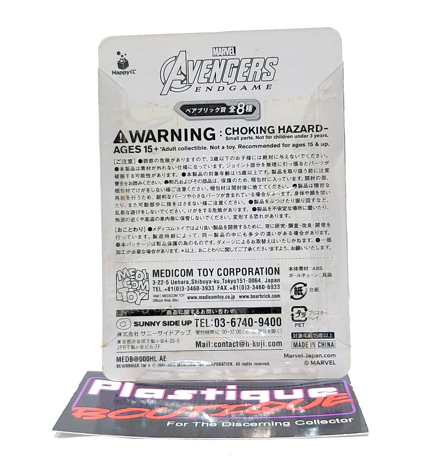 In a collaboration between Bearbrick & Marvel these 100% figures were released in May 2019 as part of a Happy Kuji campaign. Japanese Kuji (くじ) are Lottery Style contests wherein you have to purchase a “lottery ticket” to determine which figure you will receive from the set. The figure comes complete, and factory sealed on the card. The cards may show some sings of wear due to age/storage, however they will still display well if you choose to keep them sealed.