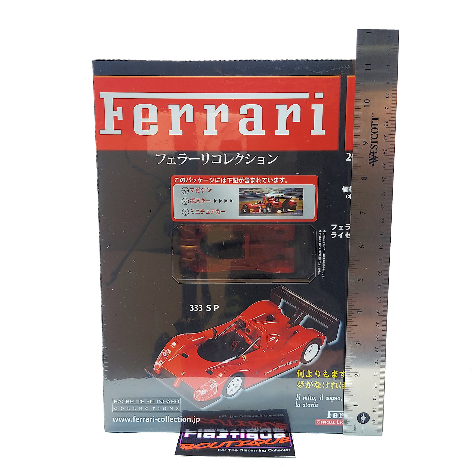 Released in 2008 by French publishing company Hachette, and sold in Japan, this parts work series ran for over 100 issues. With such a long run it is easily one of the most comprehensive collections of diecast Ferrari vehicles on the market. Hachette is know for their attention to detail and long runs that often contain vehicles/variants that have not previously been made available. Released every two weeks as a magazine subscription, each issue came with a magazine, poster, and 1:43 diecast model of the vehicle featured in the issue. Each model also includes a display stand with a name plate for each car as well.