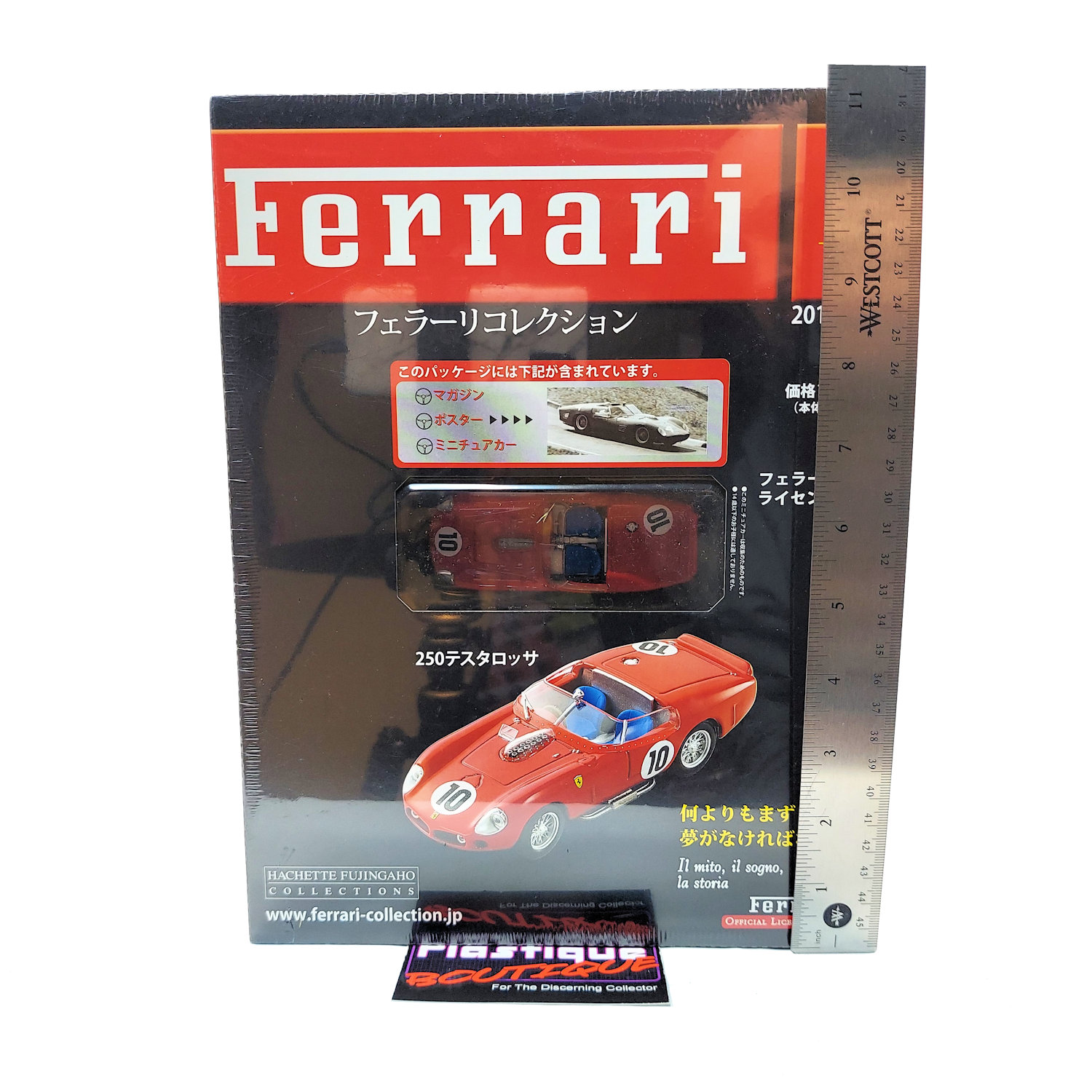 Released in 2010 by French publishing company Hachette, and sold in Japan, this parts work series ran for over 100 issues. With such a long run it is easily one of the most comprehensive collections of diecast Ferrari vehicles on the market. Hachette is know for their attention to detail and long runs that often contain vehicles/variants that have not previously been made available. Released every two weeks as a magazine subscription, each issue came with a magazine, poster, and 1:43 diecast model of the vehicle featured in the issue. Each model also includes a display stand with a name plate for each car as well.