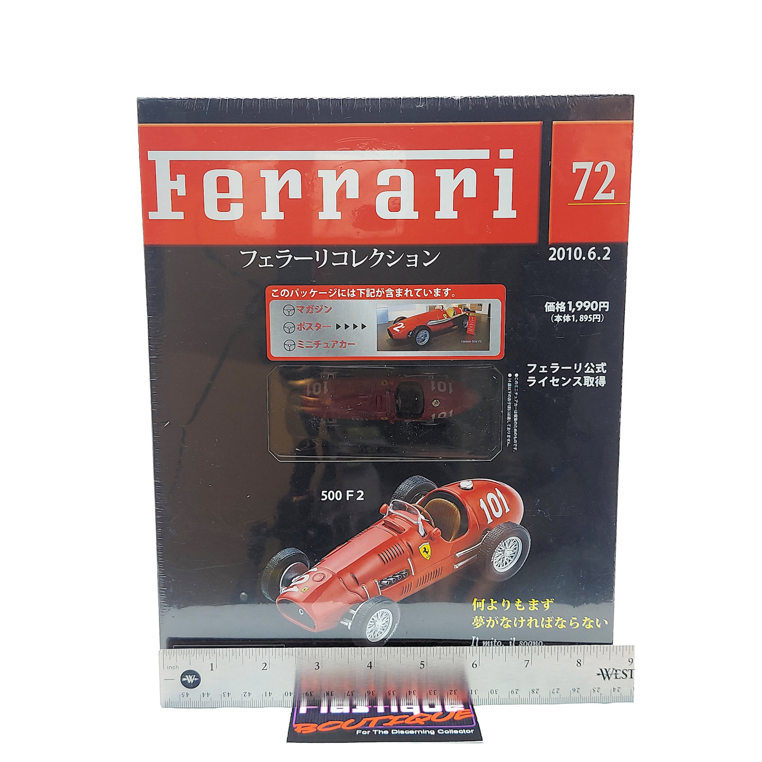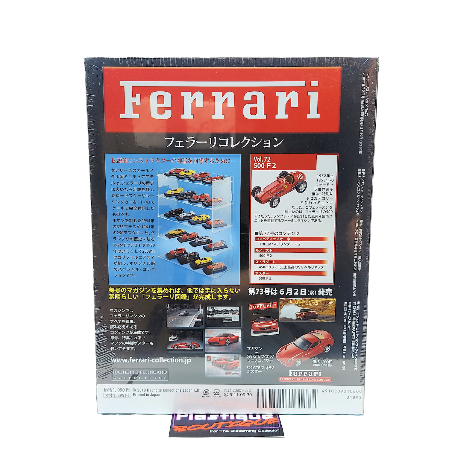 Released in 2010 by French publishing company Hachette, and sold in Japan, this parts work series ran for over 100 issues. With such a long run it is easily one of the most comprehensive collections of diecast Ferrari vehicles on the market. Hachette is know for their attention to detail and long runs that often contain vehicles/variants that have not previously been made available. Released every two weeks as a magazine subscription, each issue came with a magazine, poster, and 1:43 diecast model of the vehicle featured in the issue. Each model also includes a display stand with a name plate for each car as well.