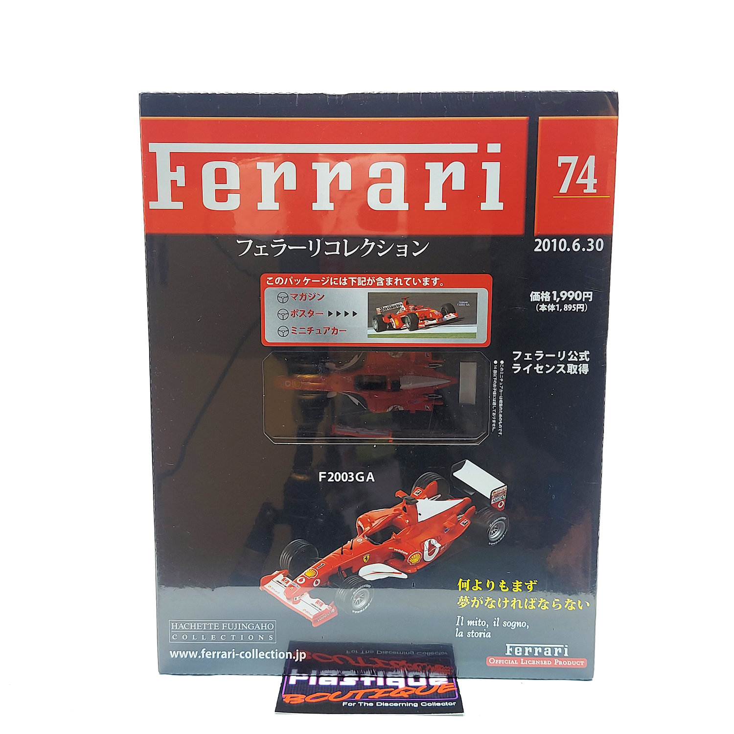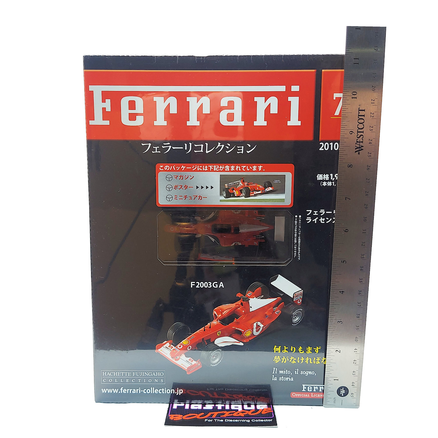 Released in 2010 by French publishing company Hachette, and sold in Japan, this parts work series ran for over 100 issues. With such a long run it is easily one of the most comprehensive collections of diecast Ferrari vehicles on the market. Hachette is know for their attention to detail and long runs that often contain vehicles/variants that have not previously been made available. Released every two weeks as a magazine subscription, each issue came with a magazine, poster, and 1:43 diecast model of the vehicle featured in the issue. Each model also includes a display stand with a name plate for each car as well.