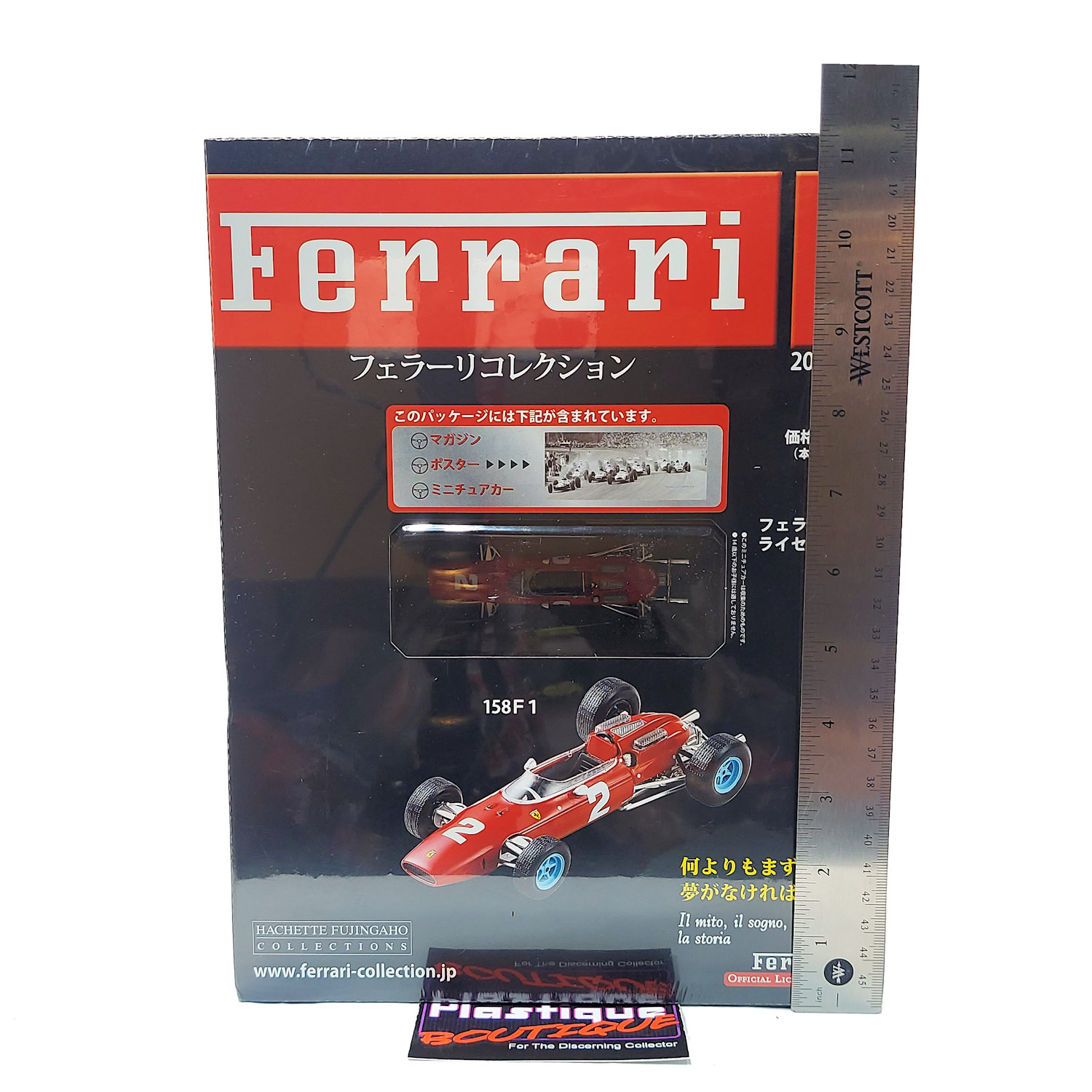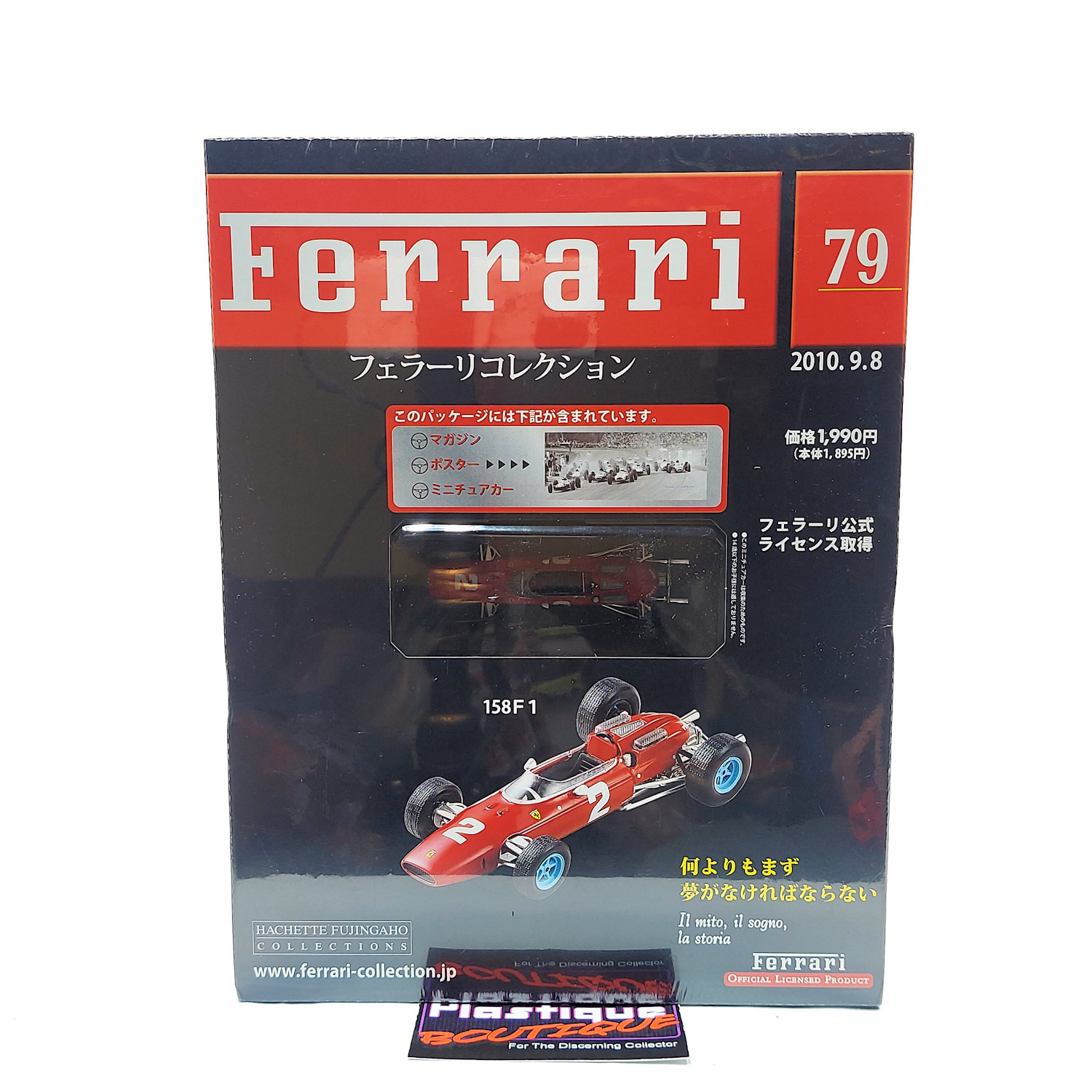 Released in 2010 by French publishing company Hachette, and sold in Japan, this parts work series ran for over 100 issues. With such a long run it is easily one of the most comprehensive collections of diecast Ferrari vehicles on the market. Hachette is know for their attention to detail and long runs that often contain vehicles/variants that have not previously been made available. Released every two weeks as a magazine subscription, each issue came with a magazine, poster, and 1:43 diecast model of the vehicle featured in the issue. Each model also includes a display stand with a name plate for each car as well.