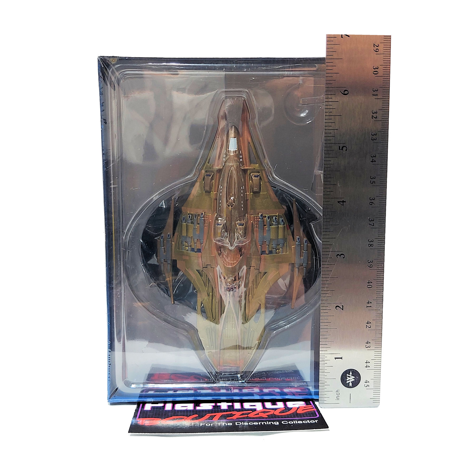 Released on December 7, 2017, by Eaglemoss Collections this figure was 113th release in their Official Starships Collection. With well over 200 unique ships in the line, The Official Starships Collection is the largest release of ships from the Star Trek Universe issued under one cohesive line. Each figure was released as part of a magazine subscription that came paired with a different ship composed of ABS Plastic & Die-Cast Metal. Arriving every two weeks, this line ran from 2013 until Eaglemoss’ eventual bankruptcy in 2020. With several Special Issue releases accompanying the regular releases this line provides a wide variety of ships (many of which that have never received a physical representation before or since).
