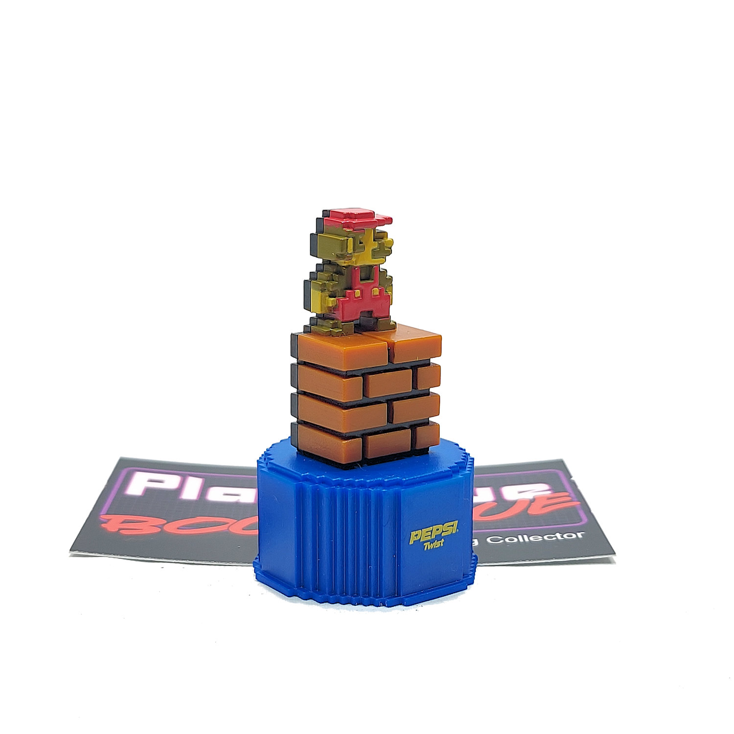 Manufactured by Suntory these small figures were released in 2005 and were available exclusively in Japan as part of a promotion with Pepsi. Each cap represents an iconic character from the classic Super Mario Bros. game released on the original Nintendo Entertainment System (NES) in an 8 bit “Pixel Art Style”… right down to the pixelated rendition of the bottle cap. Perfect for any classic video game aficionado.