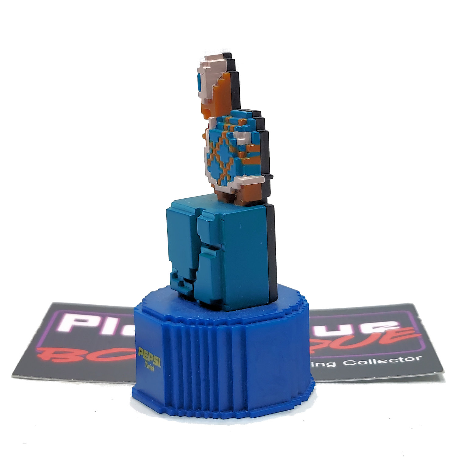 Manufactured by Suntory these small figures were released in 2005 and were available exclusively in Japan as part of a promotion with Pepsi. Each cap represents an iconic character from the classic Super Mario Bros. game released on the original Nintendo Entertainment System (NES) in an 8 bit “Pixel Art Style”… right down to the pixelated rendition of the bottle cap. Perfect for any classic video game aficionado.