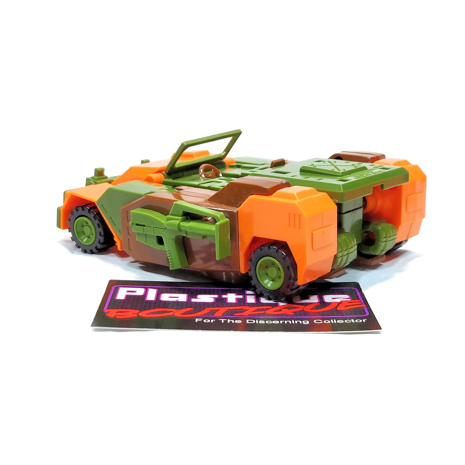 Released in 1985, Roadbuster comes complete with all of it’s accessories, as well as a reproduction sticker sheet so that you can accurately place the stickers. The missiles are still firmly attached to the sprue, and the antenna has not been bent; both will come sandwiched between two pieces of cardboard to prevent any damage during shipping/storage. The seat and steering wheel (often broken/missing) are both intact. This would make a great addition to any Vintage Transformers collection.