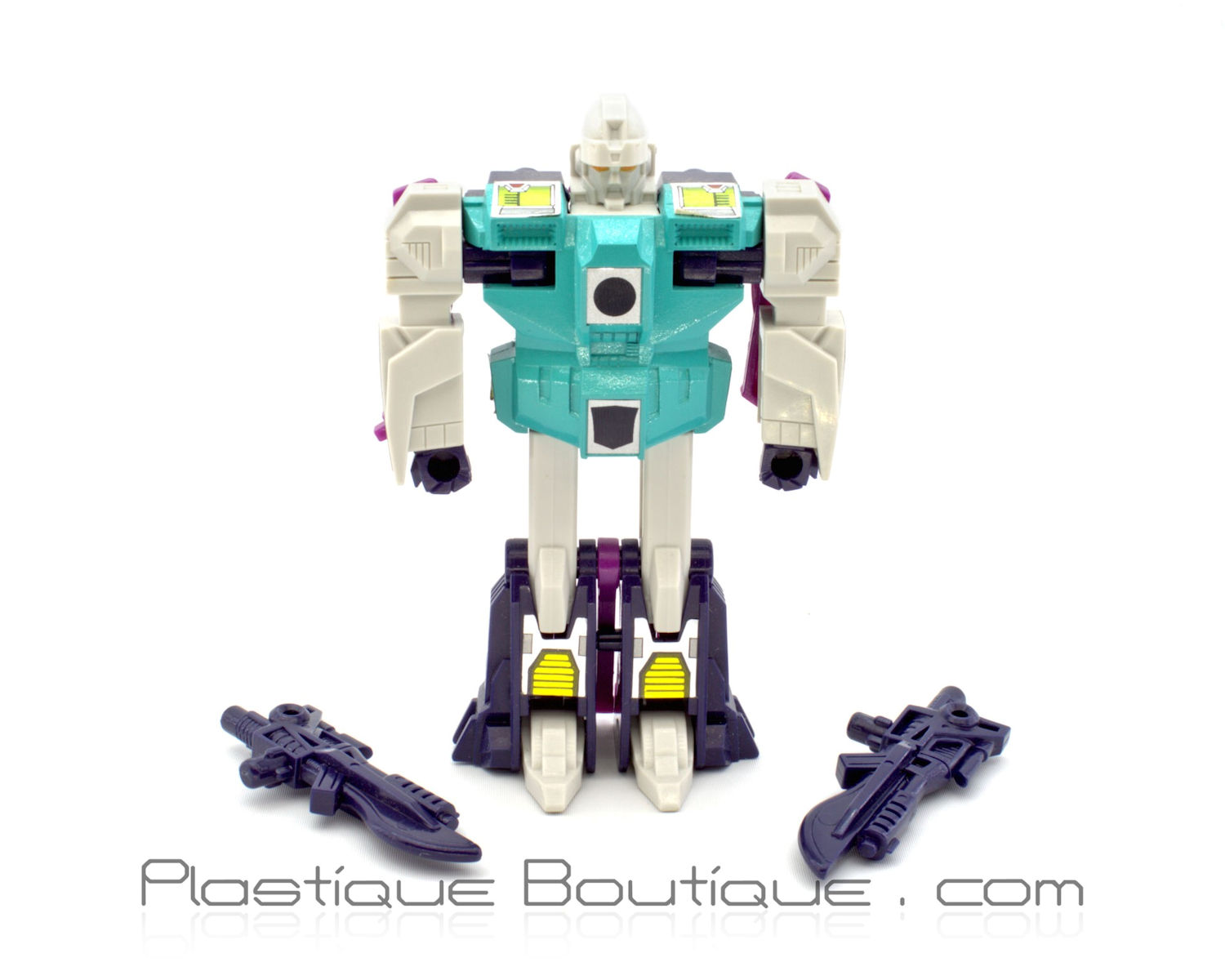 His twin “anti-personnel missile launching bayonets” can be held as blasters or as swords, thanks to having dual 5 mm posts. They can be mounted on his back/shoulders or on his haunches in puma mode.